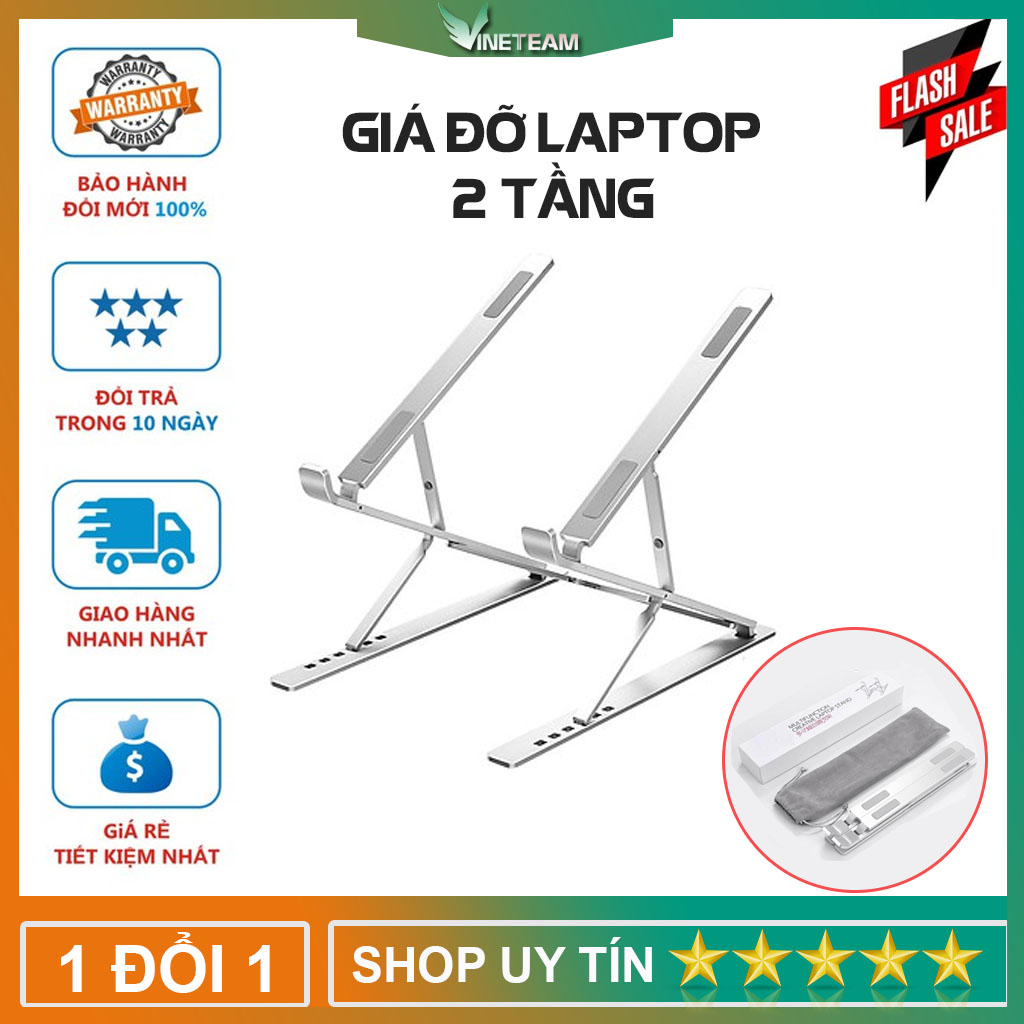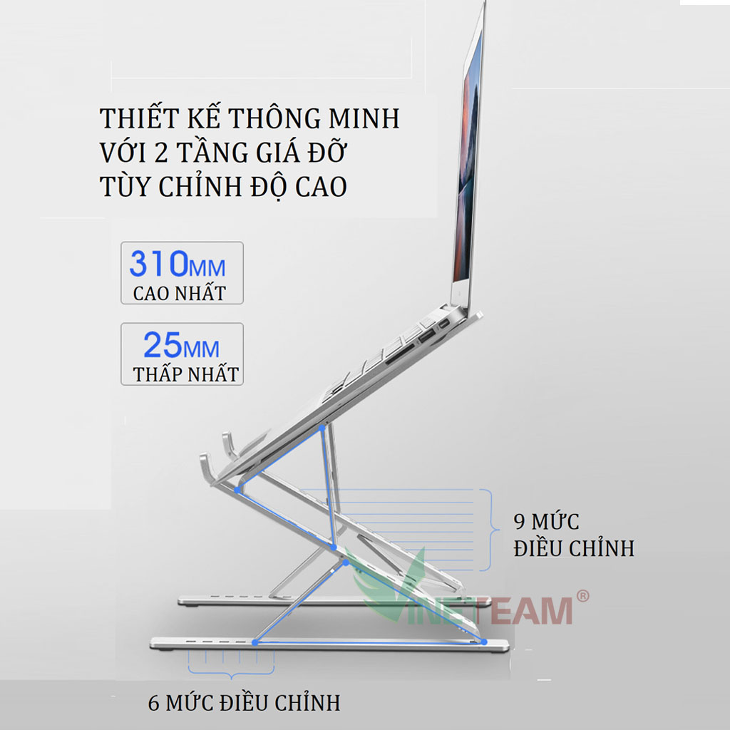 * Giá đỡ laptop với thiết kế thông minh 2 tầng chỉnh độ cao + xếp gọn