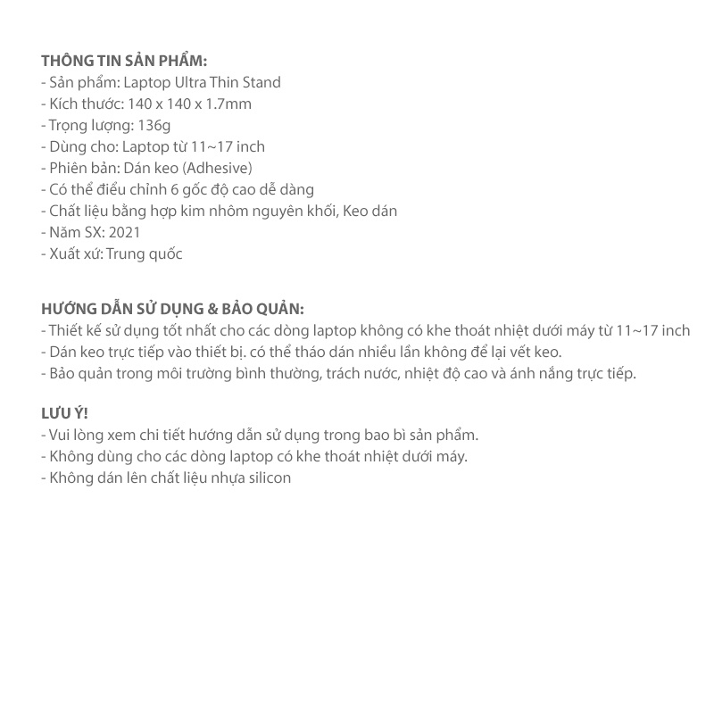 Máy tính & Laptop > Phụ Kiện Máy Tính > Miếng Dán & Ốp Laptop || Giá Đỡ Laptop Siêu Mỏng 1.7mm Ultra Thin Stand, Chân Đế MacBook Hợp Kim Nhôm Sang Trọng, Nhiều Độ Cao Điều ChỉnhCòn hàng