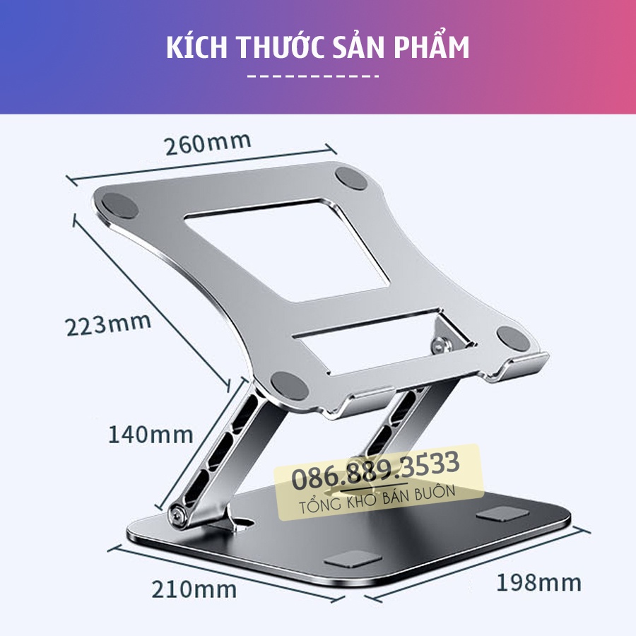 Giới thiệu Giá đỡ Laptop - Tablet - Bằng Nhôm - L515 - 11 - 17 Inch - Đế tản nhiệt nâng Macbook - máy tính bảng - Ipad - Màu Bạc