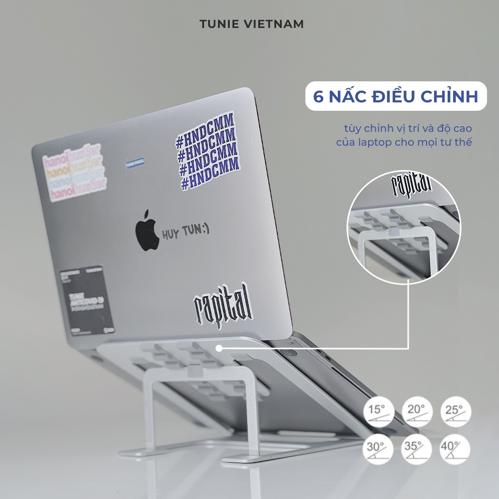 Giá đỡ laptop Tunie - gấp gọn, tản nhiệt, có thể điều chỉnh độ cao, chống mỏi cổ