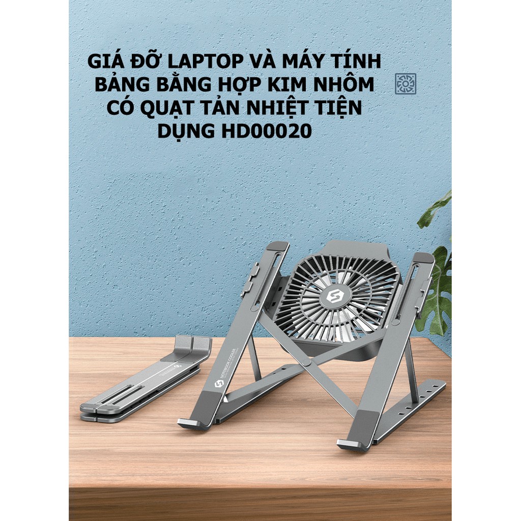 Giá đỡ laptop và máy tính bảng bằng hợp kim nhôm có quạt tản nhiệt tiện dụng đa năng cho Laptop, điện thoại, đọc sách