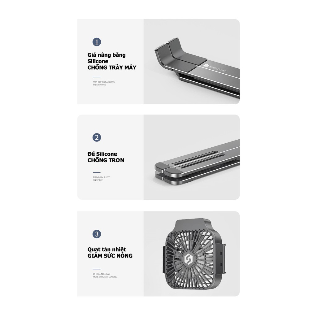 Giới thiệu Giá đỡ laptop và máy tính bảng bằng hợp kim nhôm có quạt tản nhiệt tiện dụng