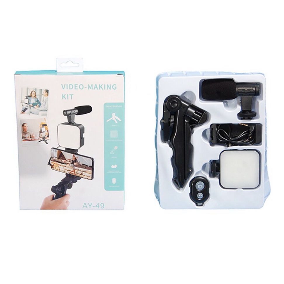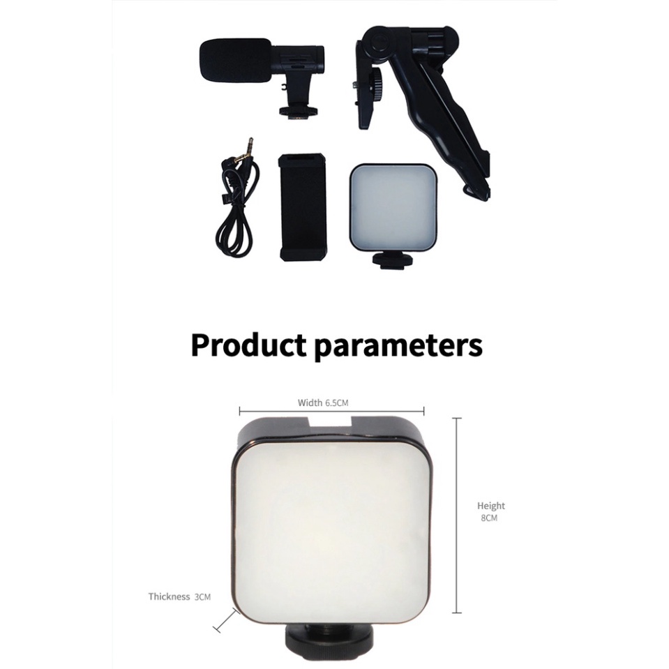 Bộ vlog được thiết kế để nâng cao chất lượng video của bạn với âm thanh và ánh sáng tốt hơn trong nhà hoặc ngoài trời, bao gồm micrô đa năng, đèn LED, tay cầm ba chân, điều khiển từ xa và bộ phụ kiện gắn kết điện thoại thông minh và máy ảnh Bộ dụng cụ có thể được sử dụng trong phát trực tiếp, làm vlog, chụp ảnh chân dung tự chụp và nhiều tình huống áp dụng khác