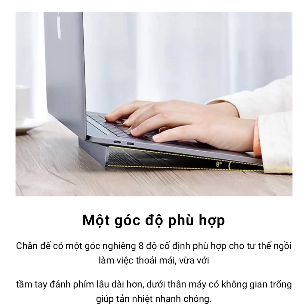 - Thiết kế phần giá đỡ chắc chắn giúp bạn có thể nâng đỡ chiếc macbook, laptop để sử dụng làm việc hoặc vui chơi, giải trí