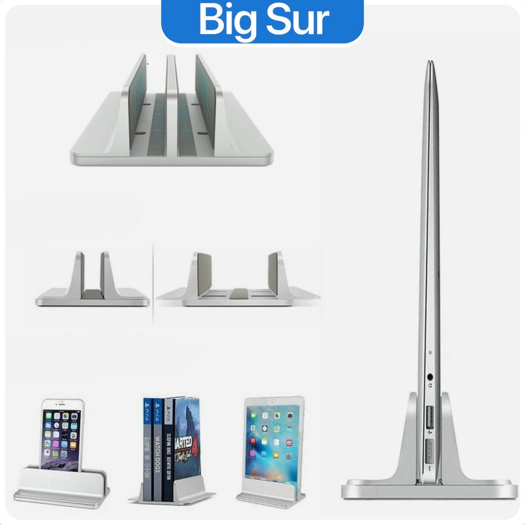 -Giá đỡ đế kẹp Macbook nhôm nguyên khối dạng đứng, thiết kế sang trọng.