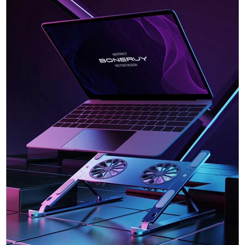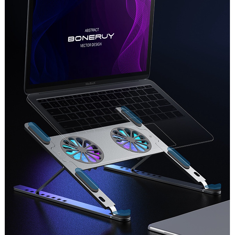 Giới thiệu Giá Đỡ Macbook Nhôm Cao Cấp Hỗ Trợ Tản Nhiệt Laptop 15.6 inch, 14 inch, 17 inch Gấp Gọn Để Bàn Đa Năng 2 Quạt Mát P11F
