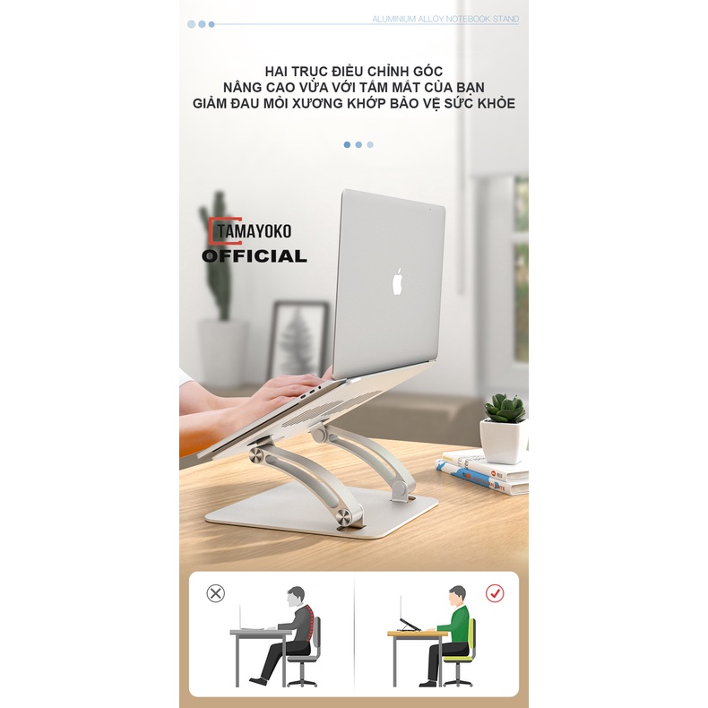 Giới thiệu Giá Đỡ Máy Tính, Laptop, iPad, Macbook Hợp Kim Nhôm Cao Cấp. Hỗ Trợ Tản Nhiệt Chống Mỏi Cổ, Vai, Gáy Tamako FS-0273