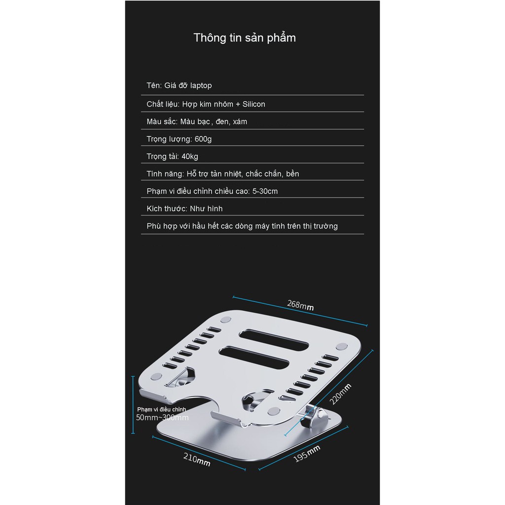 Giá Đỡ Máy Tính Laptop Macbook Hợp Kim Nhôm Giúp Tản Nhiệt Chống Mỏi Cổ Vai Gáy* Chỉnh độ cao, góc nghiêng linh hoạt