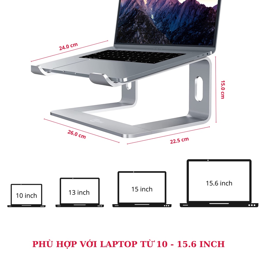 Thông thoáng chất liệu nhôm giúp máy tản nhiệt tốt hơnNâng máy tính lên vừa tầm mắt giúp bạn làm việc với tư thế vô cùng thoải mái giảm đau mỏi cổ, vai, lưng gáy