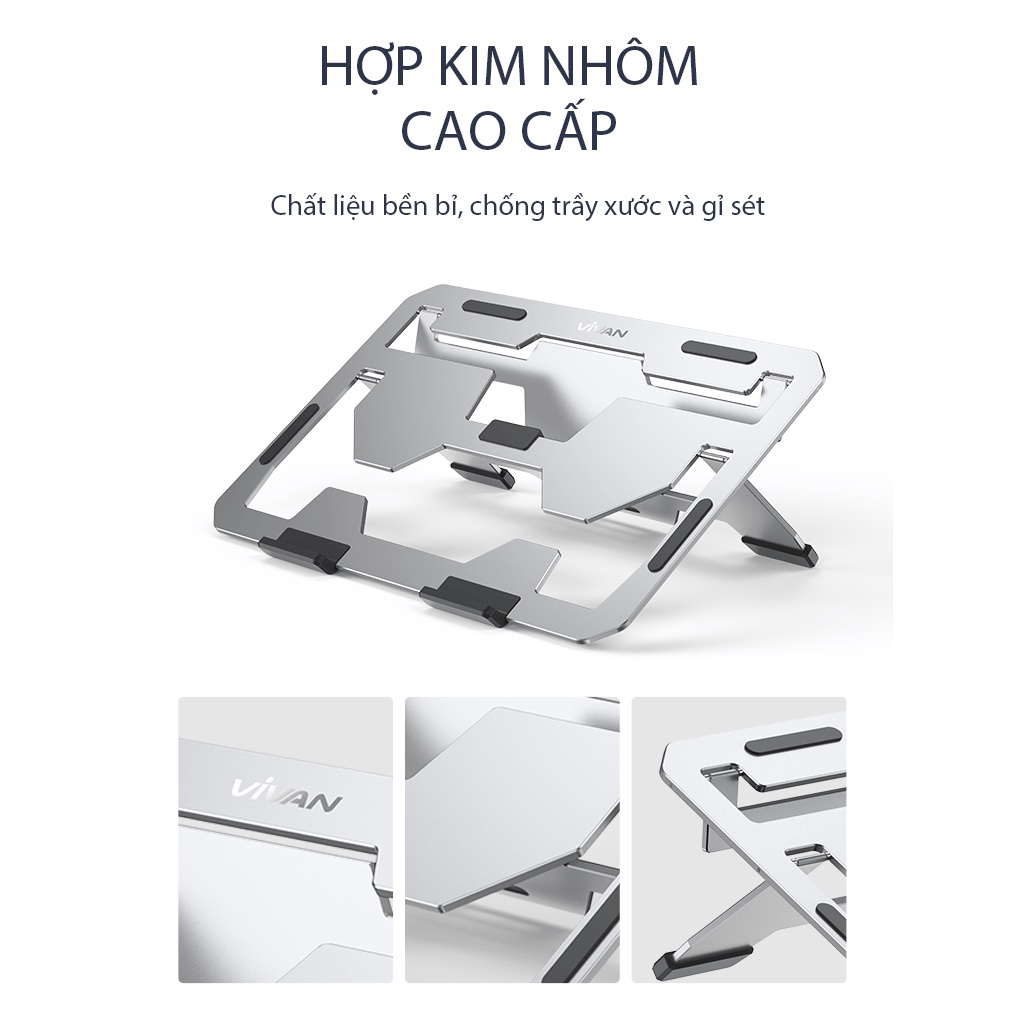 Giới thiệu Giá Đỡ Máy Tính Vivan VLS02 13-17 inch Gấp Gọn Hợp Kim Nhôm Đế Đệm Silicon Tản Nhiệt Hiệu Quả
