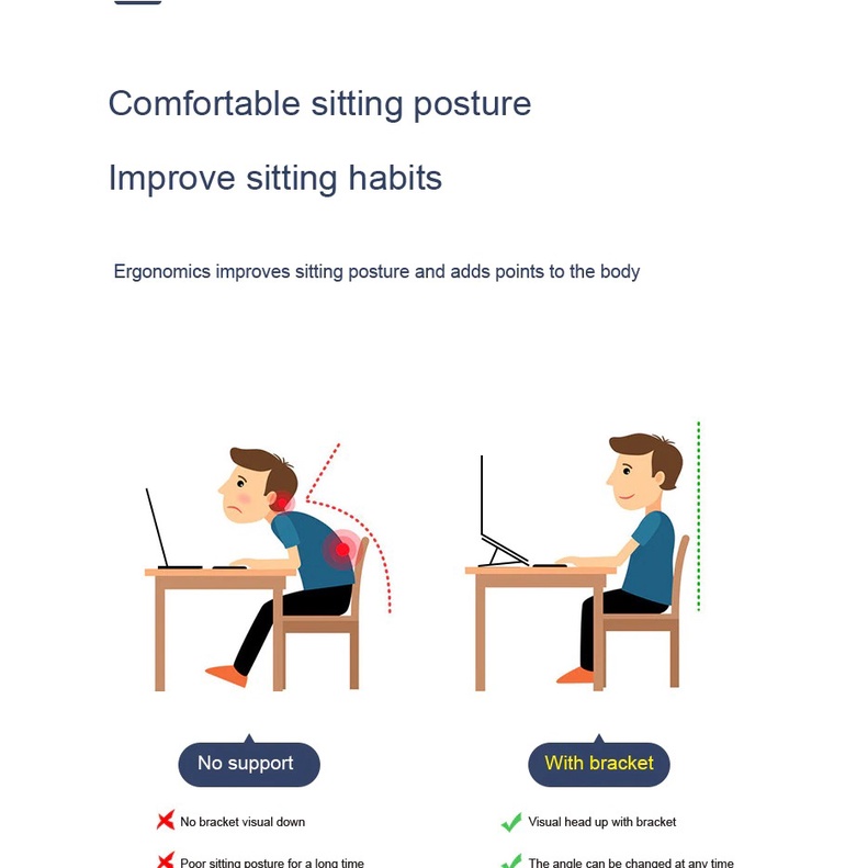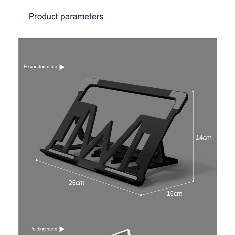 Giá đỡ máy tính xách tay Khả năng chịu lực cao -Tản nhiệt hiệu quả - Bàn có thể gập lại -Giá đỡ máy tính xách tay cho văn phòngMô tả: Gía để máy tính xách tay điểu chỉnh góc nhìn