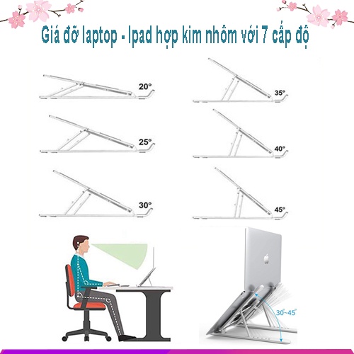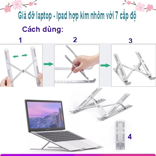 Giới thiệu Giá Đỡ Máy Tính Xách Tay, Kệ Đỡ Laptop, Ipad, MacBook, Điện Thoại Bằng Hợp Kim Nhôm Điều Chỉnh 7 Cấp Độ