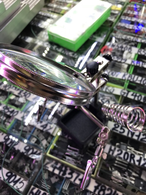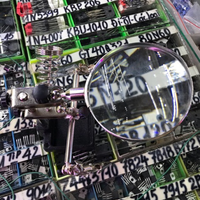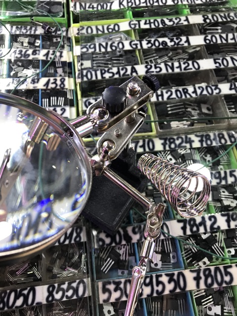 Giá đỡ mỏ hàng có kính núp . Là dụng cụ hàn những linh kiện nhỏ cho các bác thợ sửa , dụng cụ tiện dụng để làm những linh kiện dán ..Cửa hàng chuyên linh kiện điện tử , sò dòng , ic số , ic nguồn các loại ..