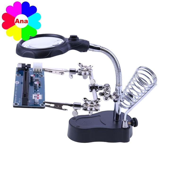 Giá đỡ mỏ hàn kệ hàn loại xịn có tay kẹp + kính lúp + đèn led đi kèm