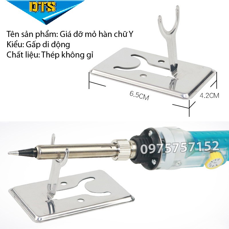 Giới thiệu Giá đỡ mỏ hàn thiếc chữ Y, đế mỏ hàn chì thép không gỉ, chịu nhiệt độ cao, gấp gọn di động, đế gác tay mỏ hàn điện tử