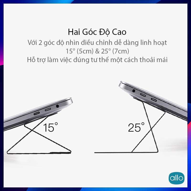 🔷Universal: 🔸Loại dùng rời tách biệt không dán có lỗ thoát nhiệt, 2 gốc độ điều chỉnh, dùng cho tất cả máy MacBook và Laptop.