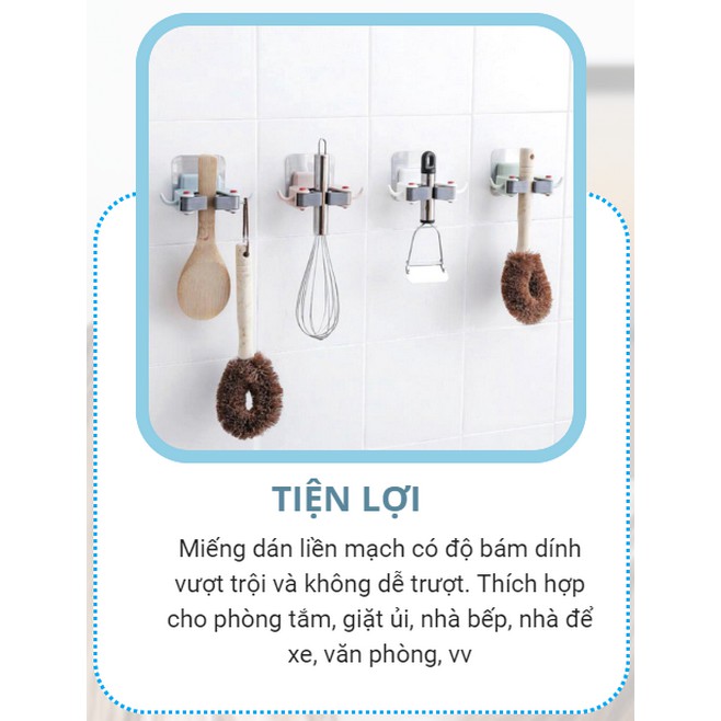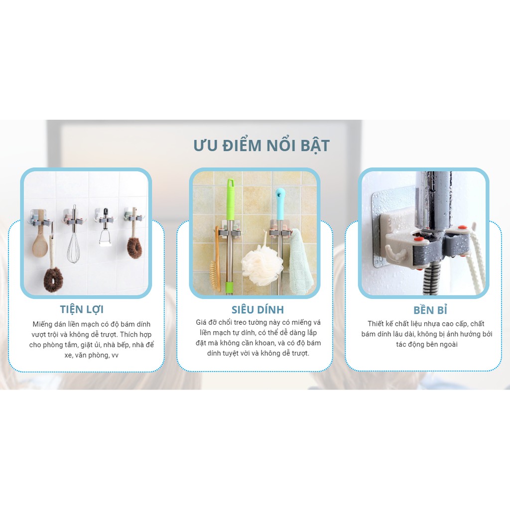 Giá đỡ chổi treo tường này có miếng vá liền mạch tự dính, có thể dễ dàng lắp đặt mà không cần khoan, và có độ bám dính tuyệt vời và không dễ trượt.