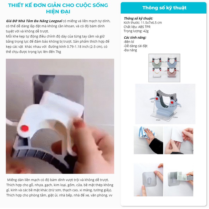 - Giá Đỡ Nhà Tắm Đa Năng Leegoal có miếng vá liền mạch tự dính, có thể dễ dàng lắp đặt mà không cần khoan, và có độ bám dính tuyệt vời và không dễ trượt.