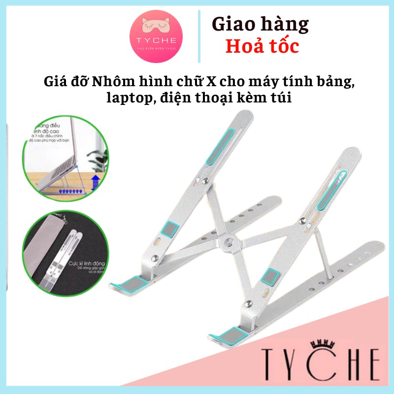 Giá đỡ Nhôm hình chữ X cho máy tính bảng, laptop, điện thoại kèm túi