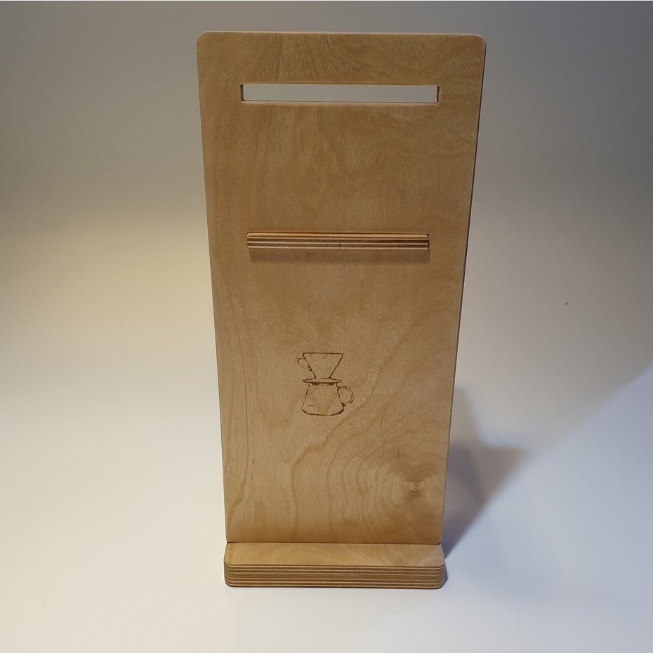 Giá đỡ pha cà phê được làm từ gỗ plywood nhập khẩu kết hợp với dầu phủ bề mặt L.Co là dầu trẩu tự nhiên giúp chống thấm nước và an toàn trong các đồ dùng cho thực phẩm.Sản phẩm không bị thấm nước nên có thể dễ dàng lau bằng khăn ướt khi bị rớt cà phê.