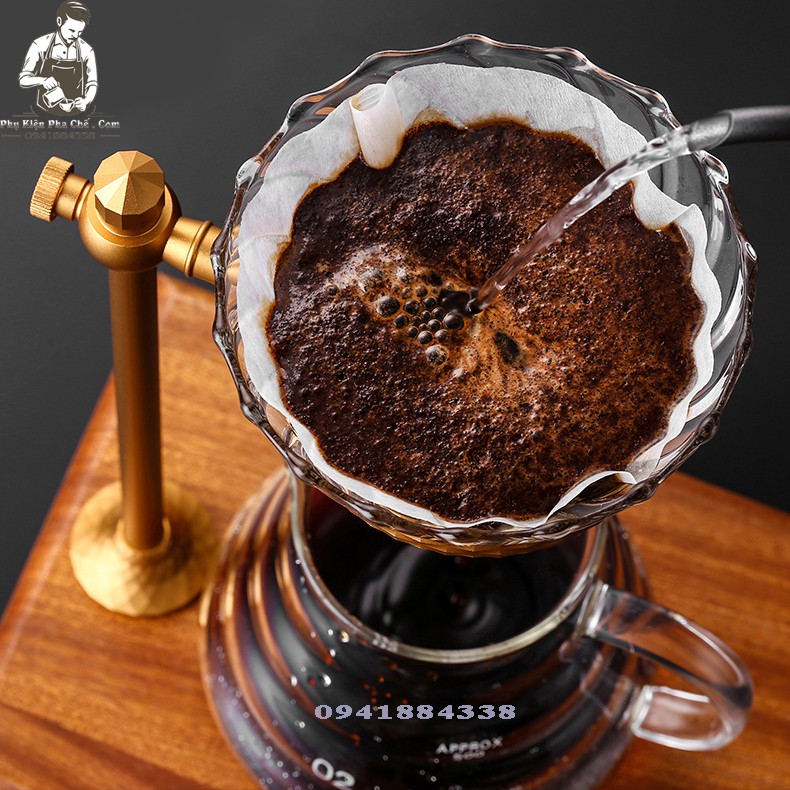 Giới thiệu Giá Đỡ Phễu Pha Cà Phê V60 Mạ Vàng Chân Đế Gỗ GD01