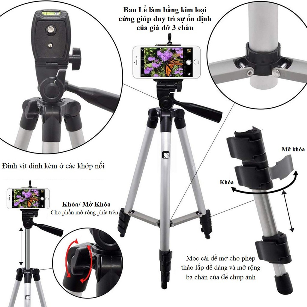 ✅ Giá đỡ 3 chân máy ảnh quay tiktok được làm từ hợp kim nhôm, nhẹ và cứng – giúp cho giá đỡ được mang đi nhẹ nhàng, thon gọn.