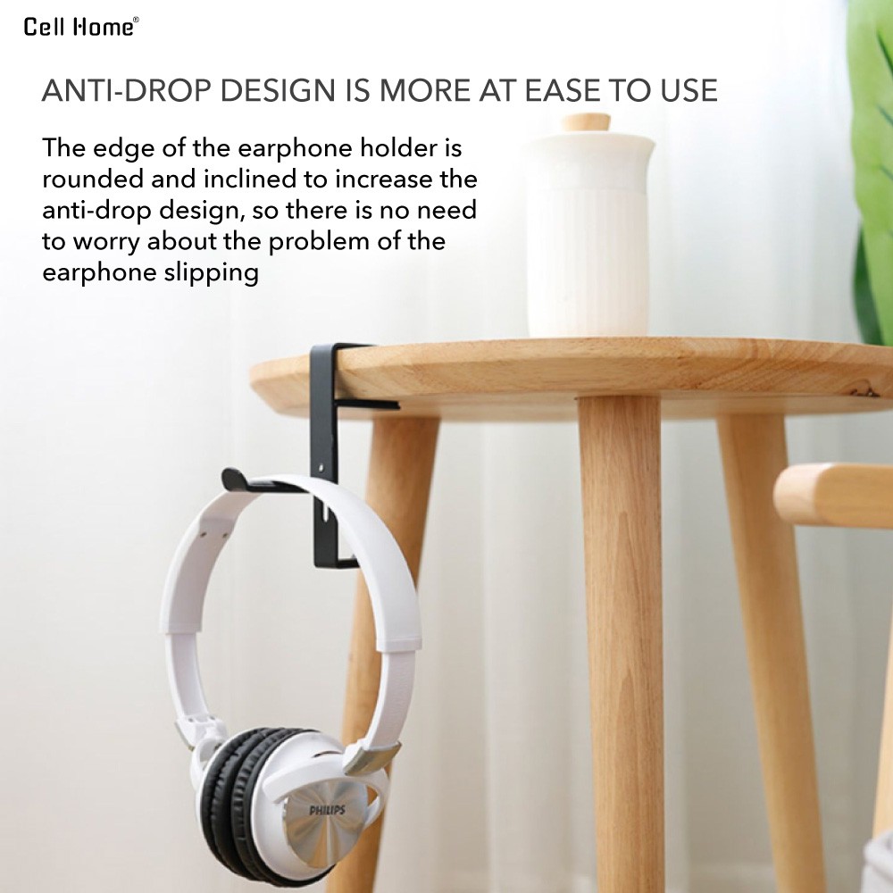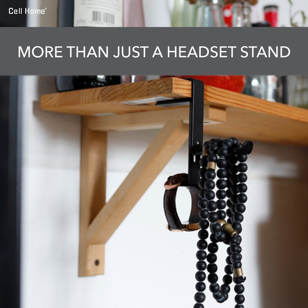 • Giá đỡ tai nghe có thể treo được tai nghe chụp tai (headphone), tai nghe nhét tai thông thường (earphones), cáp sạc... Có thể móc được cả hai bên tiện lợi. Phần giá đỡ bọc da mềm mại, bảo vệ tối đa tai nghe.