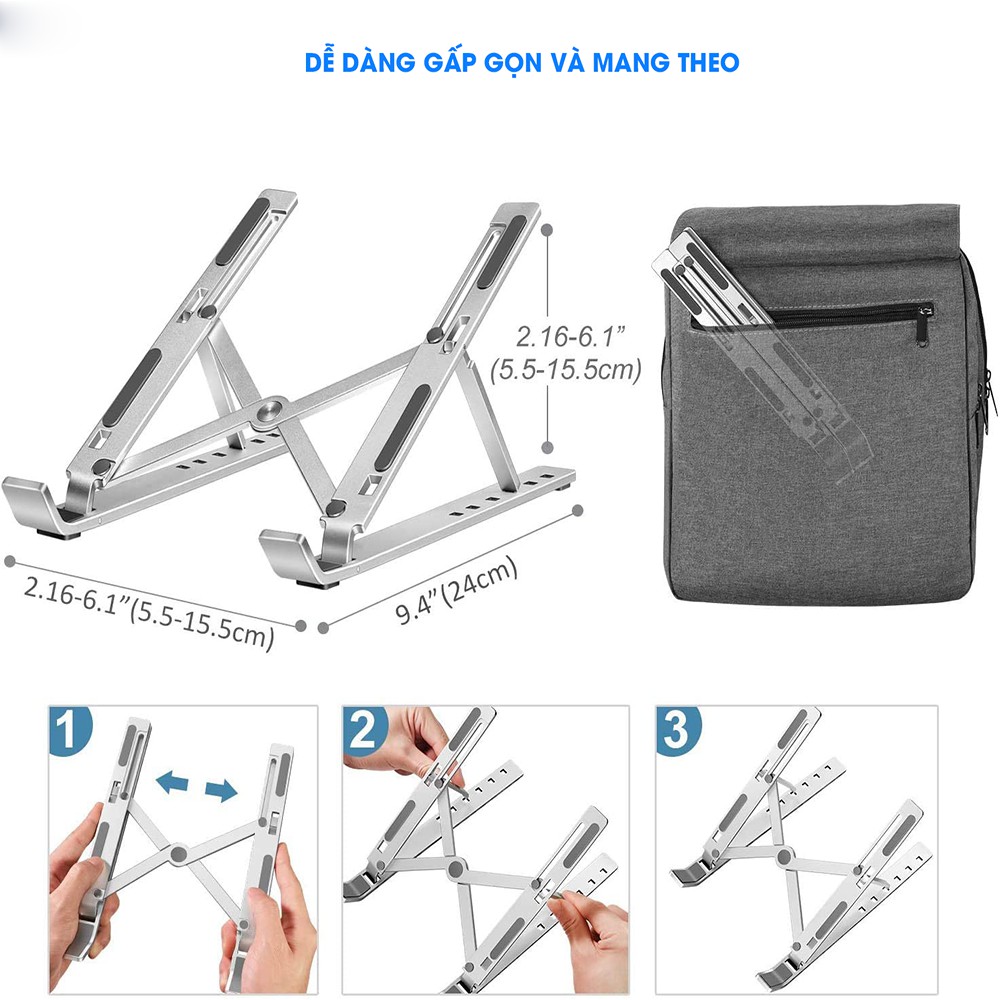 Giá đỡ tản nhiệt cho laptop, macbook, máy tính bảng chất liệu hợp kim nhôm siêu chắc, xếp gọn tiện dụng