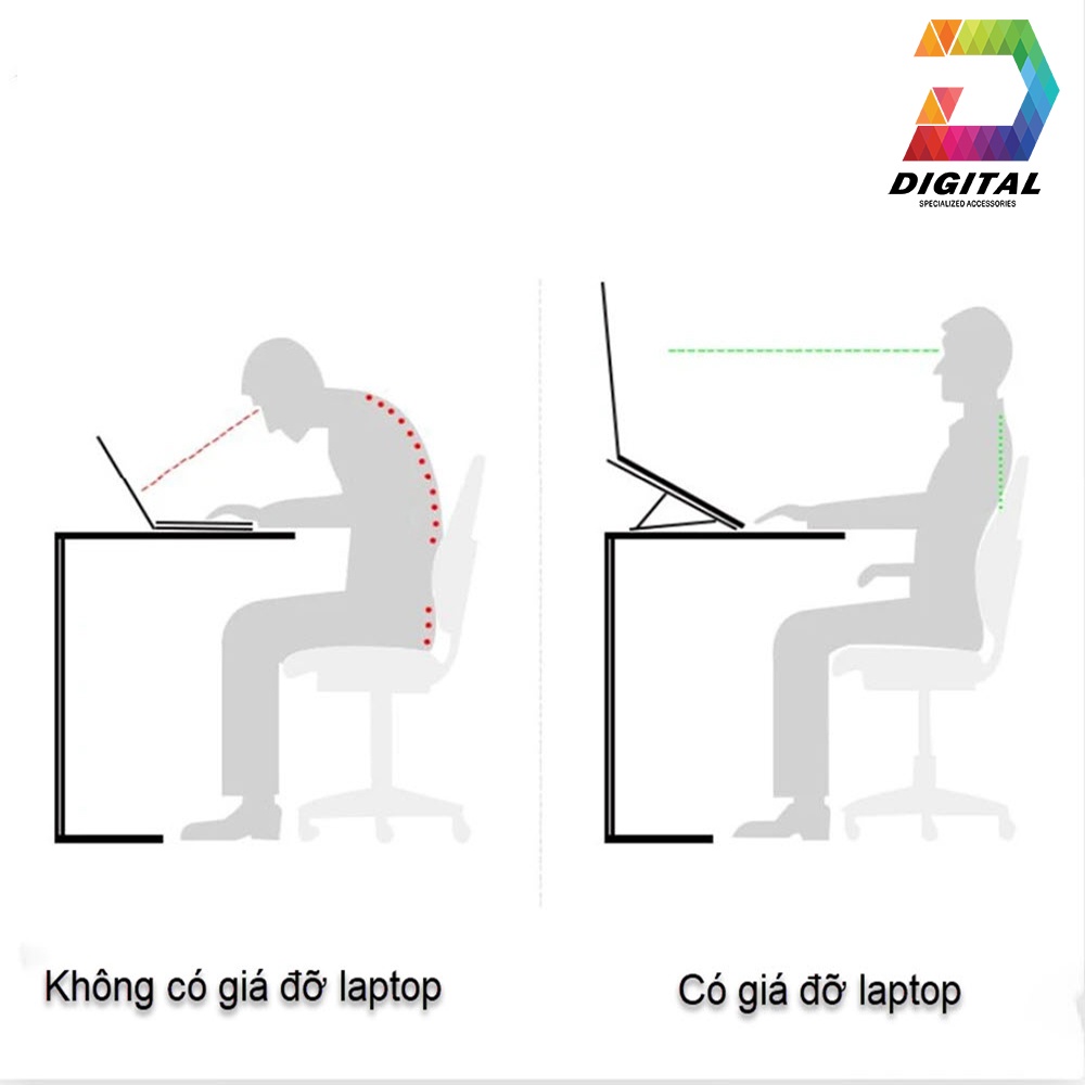 - Với chiều cao vừa phải Giá Đỡ Tản Nhiệt Laptop, iPad Xếp Gọn Thông Minh Chất Liệu Hợp Kim Cao Cấp Chắc Chắn giúp chiếc Laptop của bạn tản nhiệt dễ dàng.