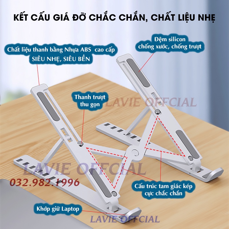 Đặc điểm nổi bật sản phẩm Giá Đỡ Laptop - Macbook, Ipad Gấp Gọn Kệ Để Laptop, Có Thể Điều Chỉnh Được Độ Cao, Đế Tản Nhiệt Laptop: