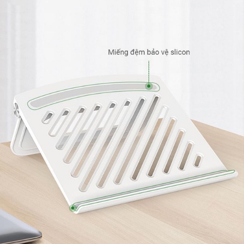 -Phần tiếp xúc giữa laptop và giá đỡ sử dụng miếng đệm bằng silicone để ổn định, chống trơn trượt đồng thời bảo vệ