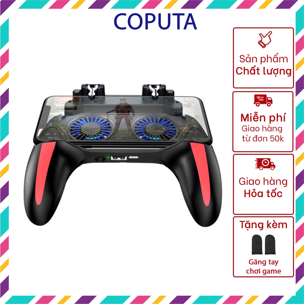 Tay cầm chơi game PUBG, FreeFire, Rules of Survial (ROS) - Tay cầm chơi game thông minh tản nhiệt với quạt, tích hợp nút chơi game mobile.