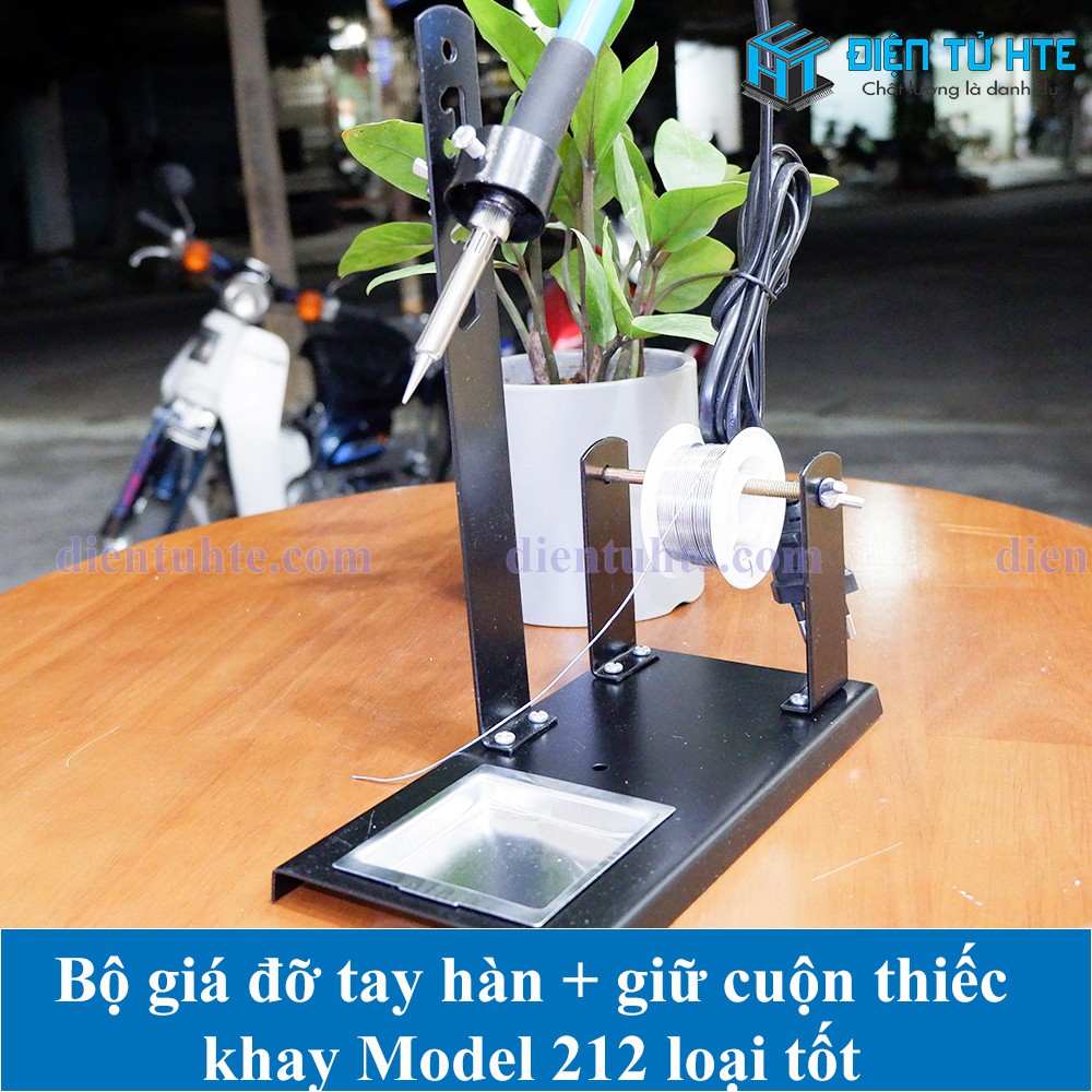 Bộ giá đỡ tay hàn + giữ cuộn thiếc + khay Model 212 loại tốtGiá đỡ dùng để gác mỏ hàn, giúp giữ mỏ hàn đang nóng nhiệt độ cao tránh tiếp xúc với các bề mặt dễ cháy.
