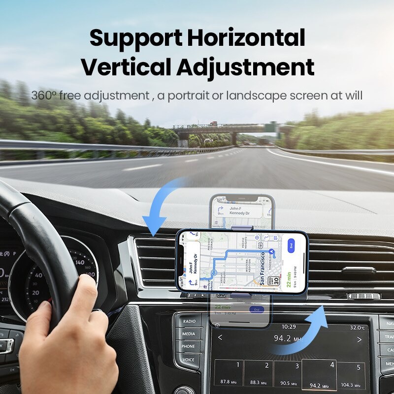Giá đỡ điện thoại cài thông gió điều hòa trên ô tô dạng từ tính Ugreen 20600 có thể xoay 360 độ và lực hút mạnh . Không cần tấm từ tínhGiúp điện thoạti của bạn Không trượt và ổn định không bị rơi, chặn cửa gió một cách an toàn
