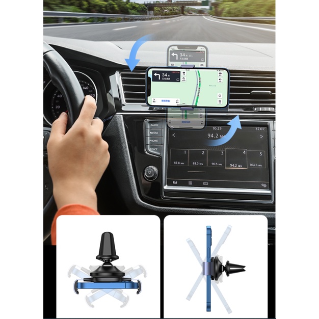 Thiết kế thông minh với 2 phần rời nhau dễ dàng lắp đặt và sử dụng tiện lợi (phần đế kẹp gắn vào khe cài thông gió, phần kẹp điện thoại)