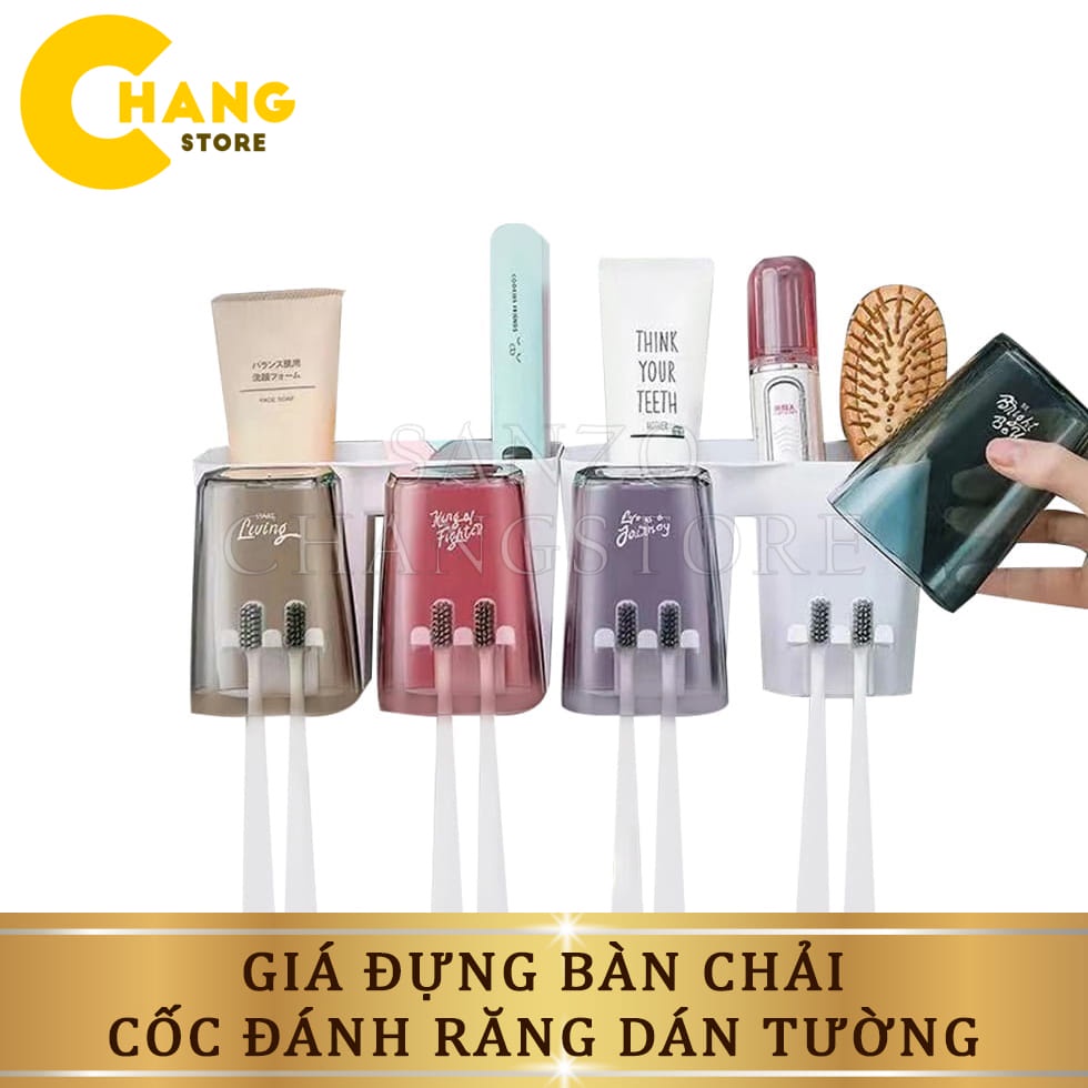 Giá đựng bàn chải, cốc đánh răng, Giá tự lấy kem đánh răng dán tường cao cấp loại mới