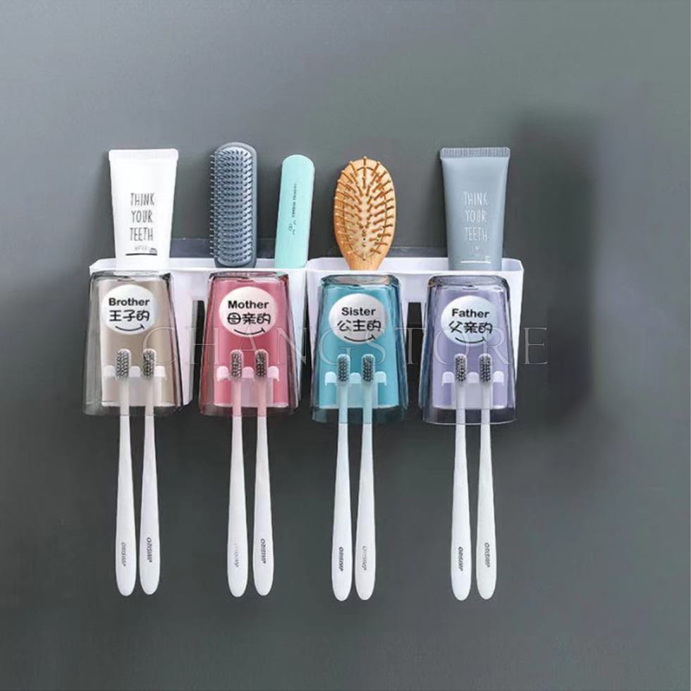 Giá đựng bàn chải, cốc đánh răng, tự lấy kem đánh răng dán tường- Chất liệu: PP + PC