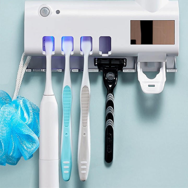 ✔ Giá treo bàn chải kem đánh răng khử khuẩn bằng tia UV cảm ứng Hồng ngoại Tiêu diệt 99% vi khuẩn gây bệnh từ bàn chải.
