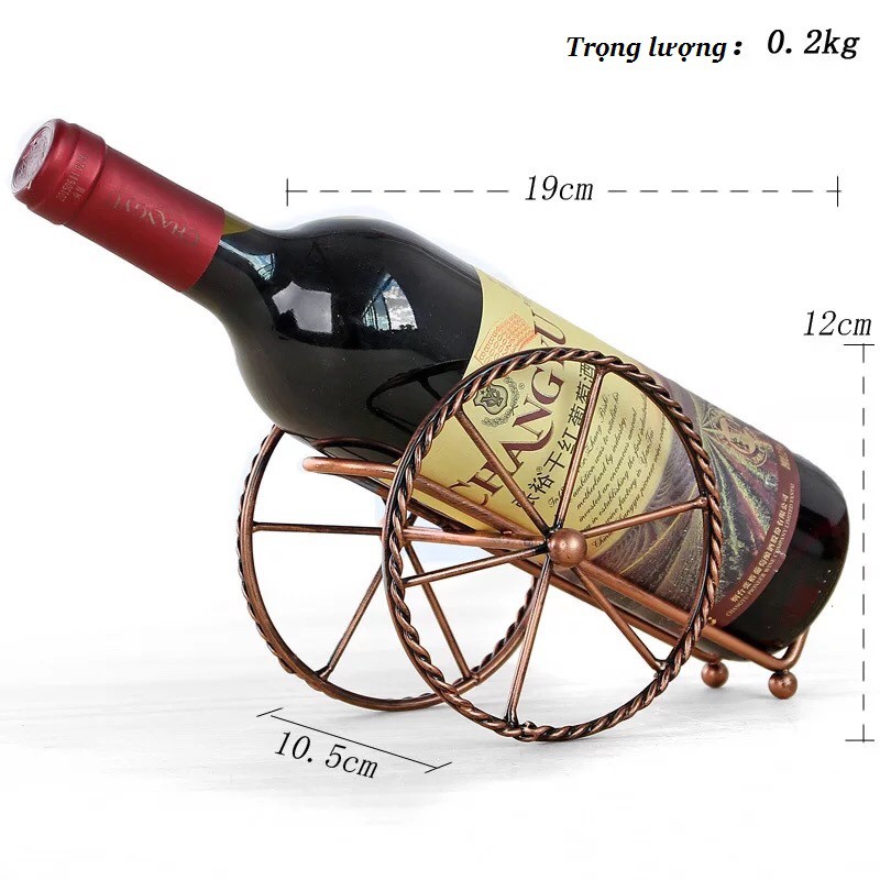 Đối với những quý ông sành rượu, rượu ngon bình đẹp chưa đủ, cần nhất vẫn là 1 chiếc giá đựng rượu bằng sắt độc đáo, lạ lẫm, đặt lên đó 1 chai rượ.u ngon nhất, đáng giá nhất trong vô số các chai rượu trong bộ sưu tập của mình.Giá đỡ rượu vang màu đồng hình khẩu pháo rất tinh tế, độc đáo mang đậm nét cổ điển, là mẫu giá đựng rượu được ưa chuộng nhất năm 2019. Với thiết kế bằng thép sơn như phủ 1 lớp đồng, hoa văn độc đáo, trang nhã, để lộ rõ hình thù chai rượu ra bên ngoài, đó là 1 sự sáng tạo của nghệ nhân.