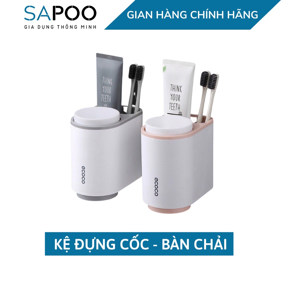 Giới thiệu Giá Đựng Cốc Và Bàn Chải Đánh Răng ECOCO Dính Tường ( Tặng Kèm 2 Cốc ) - Gia Dụng SAPOO
