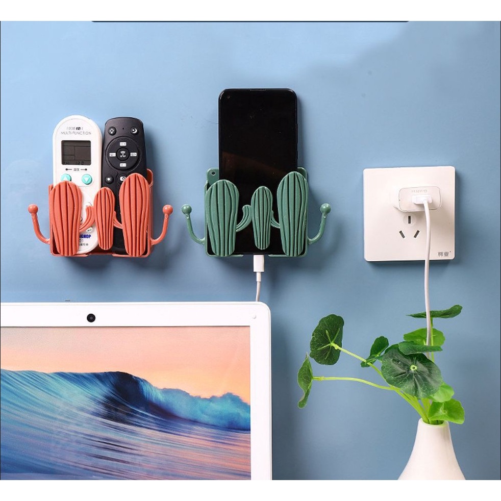 Kệ để remote hình xương rồng kèm móc treo sạc điện thoại tiện lợi, giúp không gian gọn gàng, bắt mắt.