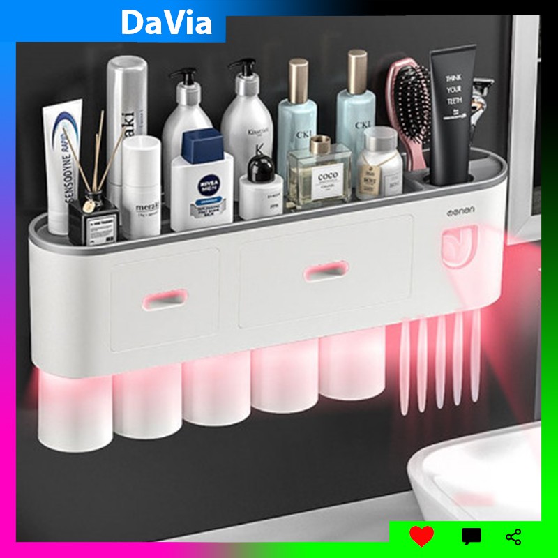 Nhà Cửa & Đời Sống > Đồ dùng phòng tắm > Kệ để đồ phòng tắm || Giá đựng đồ Oenen cho bàn chải đánh răng/khăn giấy/mỹ phẩm sức chứa lớn có chức năng nhả kem đánh răng tự độngCòn hàng