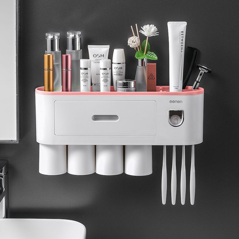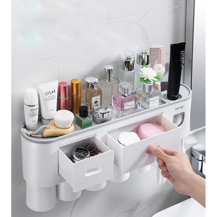 Giá đựng đồ Oenen nam châm hút cốc thông minh để đồ đa năng nhả kem đánh răng tự động