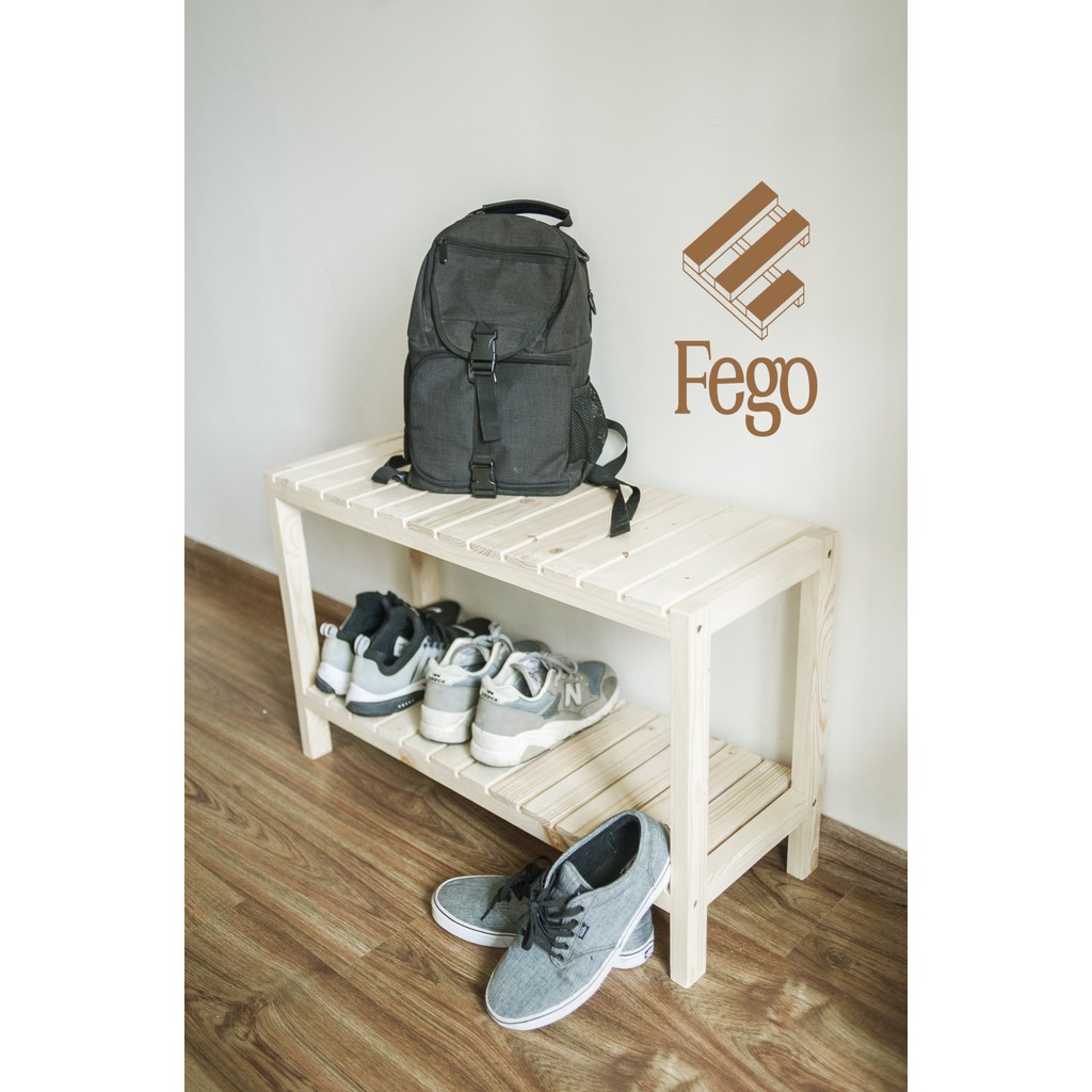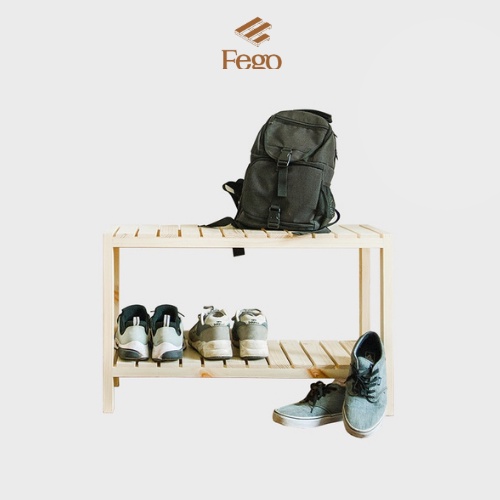 Giới thiệu Giá đựng giày dép gỗ thông tự nhiên Fego 2 tầng ngăn nan
