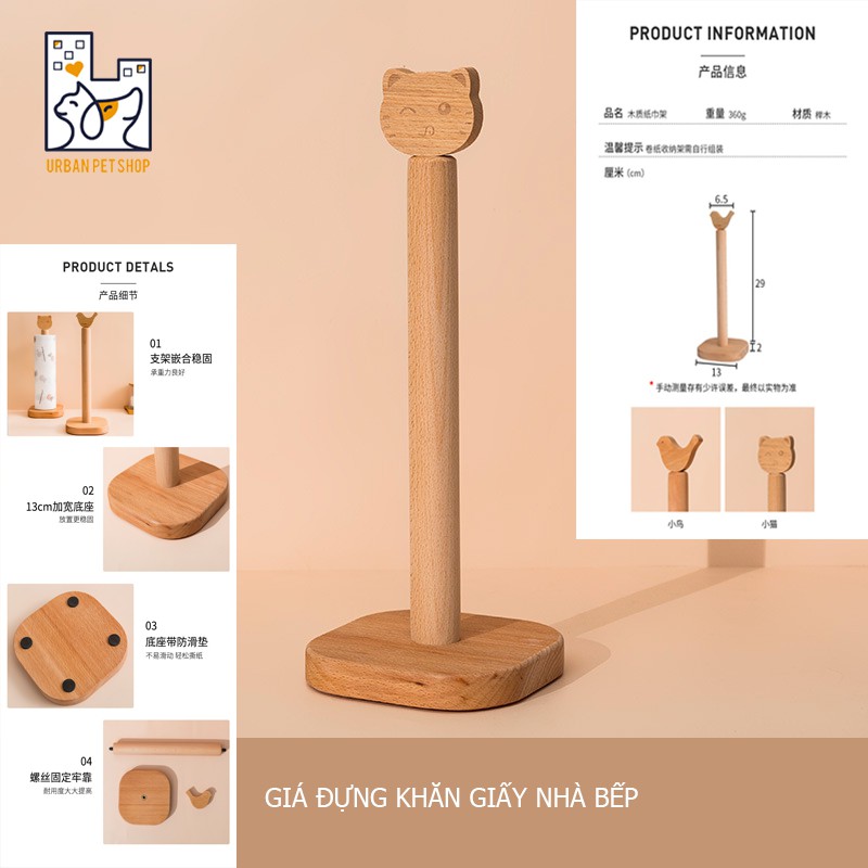 Giới thiệu GIÁ ĐỰNG KHĂN GIẤY BẰNG GỖ HÌNH MÈO