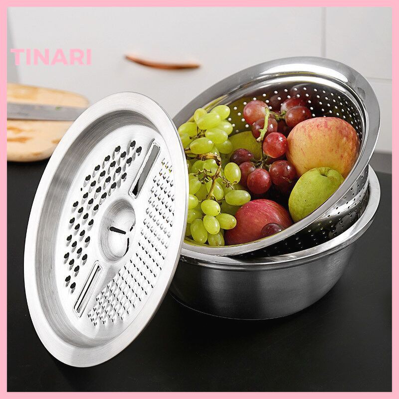 Nhà cửa & Đời sống > Dụng cụ nhà bếp > Bàn nạo, dụng cụ bào, cắt || [Đồ Gia Dụng] Rổ Inox Nạo Củ Quả Đa Năng 3 trong 1Còn hàng