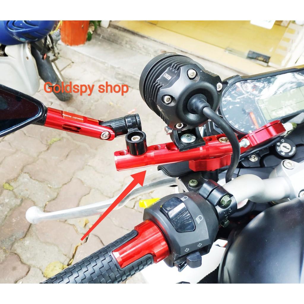 Giá gắn chân gương lắp đèn trợ sáng hoặc kẹp điện thoại để phượt
