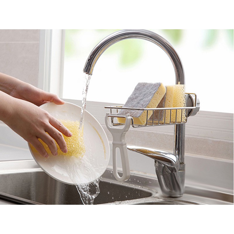 Giá gắn vòi nước để đồ rửa bát chén, đồ cọ xoong đồ tiện ích gia đình