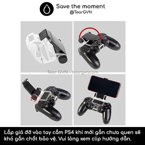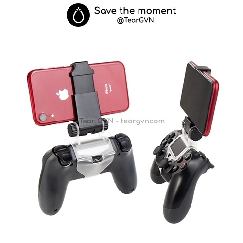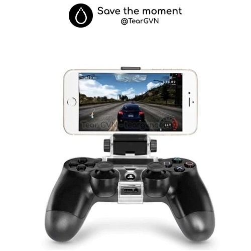 -Đế kẹp gắn vào tay cầm PS4 trước sau đó cố định rồi mới gắn điện thoại vào.