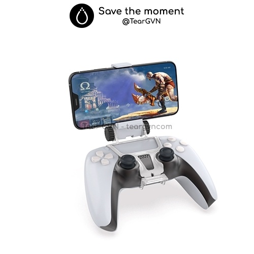-Đế kẹp gắn vào tay cầm PS5 trước sau đó cố định rồi mới gắn điện thoại vào.